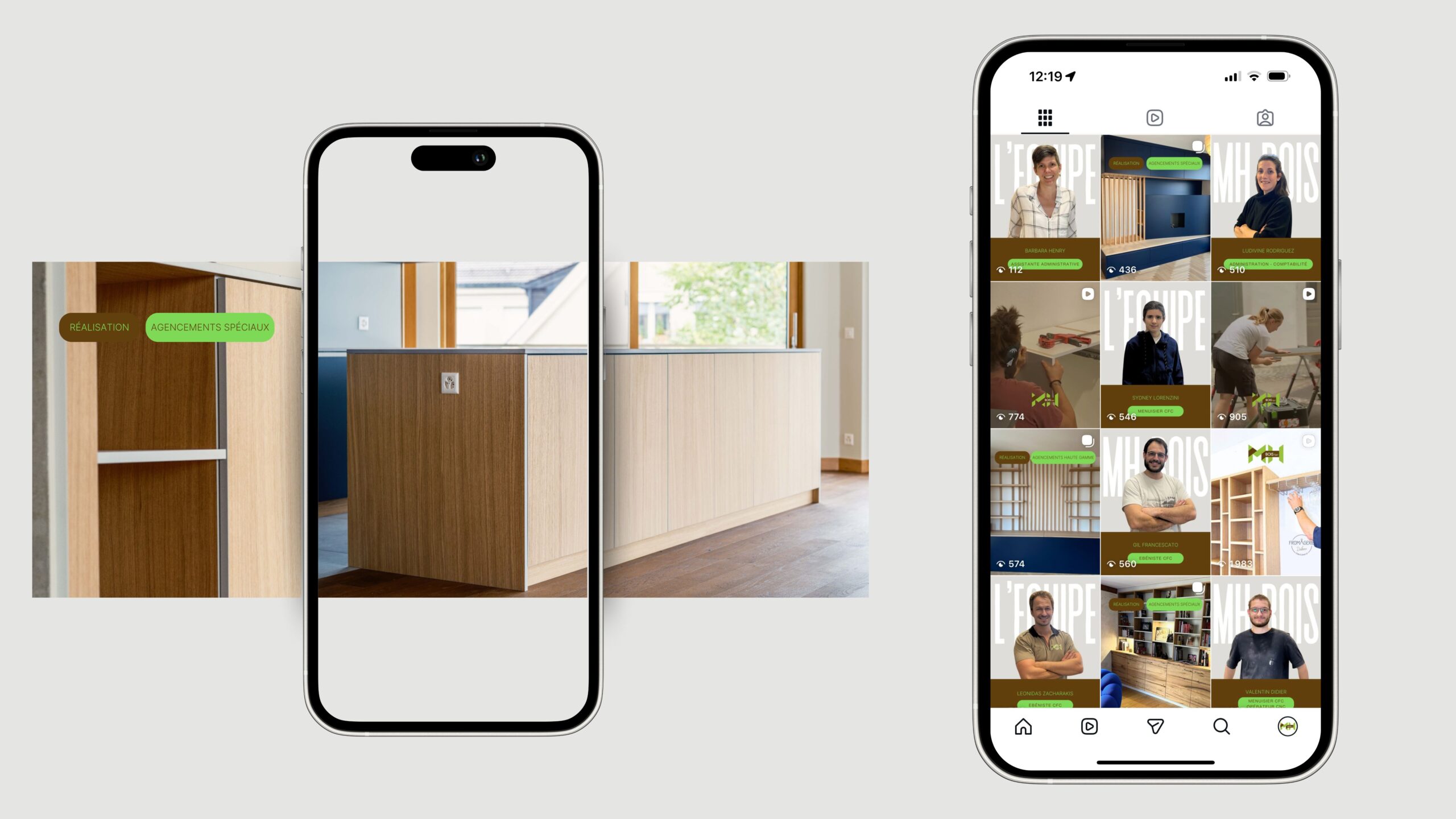 MH Bois, atelier de menuiserie et d’agencement sur mesure, souhaitait incarner davantage son univers artisanal sur Instagram : mettre en lumière le savoir-faire, les réalisations et l’équipe derrière chaque projet.
